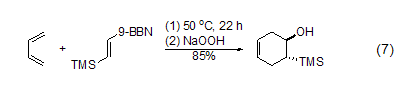 new diene affinity compounds 2-(trimethylsilyl)vinyl-9-bbn easily undergoes diels-alder reaction with butadiene. after the trihydroxyborane of the intermediate is oxidized, 2-(trimethylsilyl)cyclic ring is obtained. hexenol (formula 7)[8].