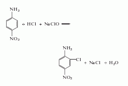 1. chlorination method of p-nitroaniline: add hydrochloric acid and sodium hypochlorite to chlorine p-nitroaniline. the reaction product is filtered, washed, and dried to obtain the finished product. raw material consumption quota: p-nitroaniline 928kg/t, sodium hypochlorite (10%) 5600kg/t, 30% hydrochloric acid 5600kg/t.