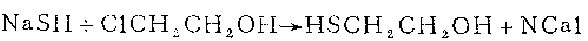 3. in 1 in a three-necked flask, melt 240 grams of sodium sulfide in a water bath and pass in hydrogen sulfide to make it saturated. add 150 grams of ethanol and pass through hydrogen sulfide to saturate it. keeping it below 20°c, slowly add 120 g of chloroethanol and leave the reaction mixture at room temperature for 36 hours. pass hydrogen chloride until the mixture becomes acidic. filter off the sodium chloride. the filtrate was fractionated under reduced pressure to obtain β-mercaptoethanol, with a yield of 26-30%.