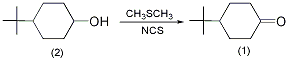 into a reaction bottle equipped with a stirrer, thermometer, and ventilation tube, add 200 ml of toluene and 8 g of ncs (0.06 mol), add nitrogen, and cool to 0°c while stirring. add 6 ml (0.1 mol) of dimethyl sulfide, cool to -25°c, and add dropwise a solution of 4-tert-butylcyclohexanol (2) and 40 ml of toluene for about 5 minutes. after the addition was completed, the reaction was stirred at -25°c for 2 hours. add dropwise a solution of 6g (0.06mol) triethylamine and 10ml toluene, and complete the addition in about 3 minutes. remove the cold bath, add 400 ml of diethyl ether after 5 minutes, wash with 100 ml of 1% dilute hydrochloric acid and 100 ml of water x 2, dry over anhydrous sodium sulfate, and concentrate under reduced pressure. the residue was distilled under reduced pressure, and the fraction at 120°c/3.325kpa was collected to obtain the product 4-tert-butylcyclohexanone (1) 5.54-5.72g, with a yield of 90%-93%. note: ① this is a method to oxidize primary and secondary alcohols into carbonyl compounds with high yield. the following various carbonyl compounds can be synthesized using this method (table i=7-5 page 286). [1]