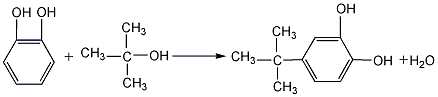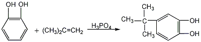 3.by catechol and the reaction of tert-butyl alcohol yields xylene, catechol and phosphoric acid. stir and heat to dissolve. continue to raise the temperature until xylene refluxes. add the xylene solution of tert-butanol dropwise to carry out the reaction. after cooling n and letting it stand, the xylene layer is neutralized with sodium carbonate, washed with water, and then distilled under reduced pressure to obtain the finished product. or it can be obtained by the reaction between catechol and isobutylene. add phosphoric acid, xylene and catechol into the reaction kettle, raise the temperature to a certain temperature and pass in the isobutylene. after the reaction is completed, centrifuge the filtrate and wash the filtrate with saturated sodium chloride solution until the ph value is 6. distillate to recover xylene, distill under reduced pressure and collect.