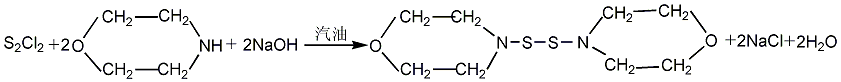 add morpholine, solvent gasoline (or benzene and toluene) and a small amount of water to the reaction kettle. after stirring evenly, add sulfur monochloride, gasoline and sodium hydroxide solution dropwise into the kettle at the same time, and control the temperature at 10°c. next, the sodium hydroxide solution should be added dropwise before the carbon monochloride. after the dropwise addition is completed, add a certain amount of water and continue stirring for 30 minutes. the reactants are then suction filtered, and the filtrate is separated into gasoline and water phases and the gasoline is recovered. the filter cake is added to the centrifuge and washed with water until neutral. after the water is removed, it is dried to obtain the finished product.