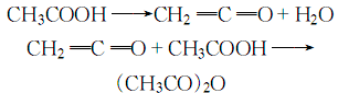 5. acetic acid cracks at high temperatures ketone can be obtained, and then absorbed with acetic acid to obtain acetic anhydride: