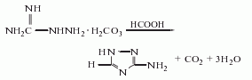2. cyanamide-hydrazine method is produced by the reaction of cyanamide, hydrazine hydrate and formic acid. the reaction formula is as follows: