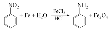 6. nitrobenzene is reduced by catalytic hydrogenation or reduction with iron powder: