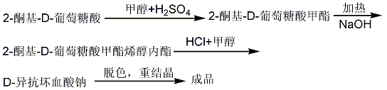 1. it is made from corn starch as raw material and fermented into gluconic acid. the process used by japan’s fujisawa pharmaceutical company is: glucose is produced from corn starch, then methly2-ketogluconate is produced, treated with sodium methoxide to obtain sodium erythorbate, and then passed through an ion exchange resin desalting, erythorbic acid is produced.