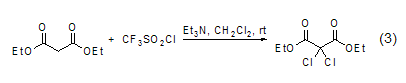 in addition, diethyl malonate the methylene group of the ester can also undergo a chlorination reaction (formula 3)[7].