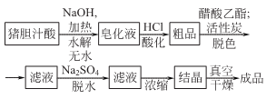 add saturated lime water supernatant to fresh pig bile, heat to boiling to generate bilirubin calcium salt, filter, add hydrochloric acid to the mother liquor while it is hot, and acidify it until congo red turns blue. precipitate the black colloidal precipitate combined with bile acid, remove the emulsion, and collect the precipitate to obtain crude porcine bile acid. take crude bile acid, add 1.5 times sodium hydroxide and 9 times water, and heat and hydrolyze it for more than 16 hours. after cooling, siphon off the upper light yellow liquid, and add an appropriate amount of water to the precipitate to dissolve it. add hydrochloric acid or sulfuric acid to the aqueous solution to reach ph 3.0~3.5. separate the precipitate, wash it with water until it is nearly neutral, and dry it in a vacuum to obtain crude porodeoxycholic acid. take the crude porodeoxycholic acid and add 5 times the amount of ethyl acetate, then add 15% to 20% activated carbon, and heat to reflux to dissolve and decolorize. after cooling, filter, add 3 times the amount of ethyl acetate to the filter residue, reflux, and filter. combine the filtrate and add 20% anhydrous sodium sulfate for dehydration. after filtering out sodium sulfate, the filtrate is concentrated to 1/5 to 1/3 of the original volume and allowed to cool for crystallization. the crystals are separated by filtration, washed with a small amount of ethyl acetate, and dried in a vacuum to obtain hyodeoxycholic acid.