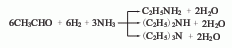 2. acetaldehyde, hydrogen ammonia the chemical method uses acetaldehyde, hydrogen and ammonia as raw materials and nickel as a catalyst to react to produce ethylamine. first, a structural catalyst with nickel as the main catalyst, reduced copper and reduced chromium as cocatalysts and kaolin as the carrier is loaded into the reactor, and acetaldehyde is introduced into the reactor at an air velocity of 0.03-0.15l·h-1 to allow hydrogen and acetaldehyde to mix. the ratio is 5:1, and the ratio of ammonia and acetaldehyde is 0.4-3:1. the feedstock is vaporized and entered into the reactor at 80°c. the reaction temperature is controlled between 105-200°c. the product is cooled at -5°c and mono-, di- and triethylamine are separated. since monoethylamine is formed faster than diethylamine and triethylamine, it is easier to obtain a large amount of ethylamine. when the main product is required to be di- and triethylamine, the generated monoethylamine needs to be recycled into the reaction system for reaction.