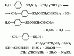 3. substitute isobutyl bromide alkane and p-toluenesulfonamide are used as raw materials and are obtained through condensation and hydrolysis. first, reflux p-toluenesulfonamide, isobutane bromide and ethanol alkali solution together for 4 hours, recover ethanol until crystallization appears, and then neutralize with hydrochloric acid, a large amount of light yellow crystals will precipitate, filter and wash with water to obtain a condensate. after mixing the condensate, sulfuric acid and water and heating to reflux for 10 hours, change to a distillation device, add 40% liquid caustic soda to adjust to alkalinity, then evaporate the crude amine under reduced pressure, and then collect the 66.8-68.8°c fraction through crude distillation to become the finished product.