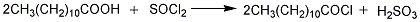 1. preparation method: (1) add thionyl chloride to lauric acid, heat to 75°c, stir and react for 2 hours, then heat to 90°c and reflux for 2 hours. the reaction mixture is then fractionated, and excess thionyl chloride is first evaporated under reduced pressure, and then the 146-150°c (2.1-2.3kpa) fraction is collected to obtain lauroyl chloride. the yield is about 80%.