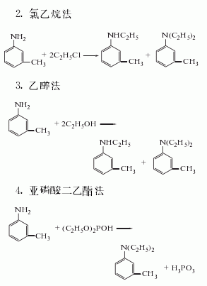 using m-toluidine as the starting material, different alkylating agents are used, such as ethyl bromide, ethyl chloride, etc.