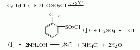 o-toluenesulfonyl chloride reacts with ammonia water at 60°c for 2 hours to produce o-toluenesulfonamide through ammoniation. the reactant is cooled and filtered to obtain a crude product, which is then decolorized with activated carbon and refined with acid and alkali to obtain the finished product.