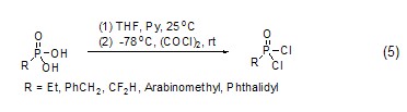 oxalyl chloride can be used to prepare phosphorus oxychloride derivatives. for example, phosphoric acid can be converted into the corresponding phosphorus oxychloride with high yield under the action of oxalyl chloride and pyridine at low temperature ( formula 5)[5].