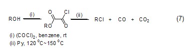 alcohol compounds react with oxalyl chloride to obtain oxalyl monoalkyl ester, which is then converted into chlorinated alkane compounds (formula 7) under heating conditions. [7]