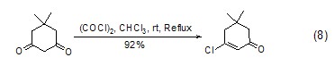 oxalyl chloride and 1,3 -diketone reaction can generate β-chloroolefin cyclide (formula 8)[8] with high yield.