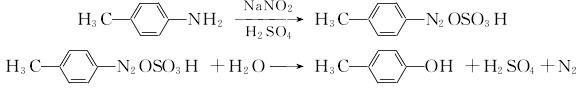 p-toluidine and sulfuric acid produce p-toluidine sulfate, which is diazotized with sodium nitrite at 0 to 5°c. the diazonium salt is then heated and hydrolyzed in dilute sulfuric acid, and the oil is separated with steam. separate the oil layer and add it to 1% sodium hydroxide, then decolorize and filter, add concentrated sulfuric acid to ph=1, then separate the water layer, add zinc powder and sulfuric acid, neutralize with sodium carbonate until neutral, and separate. the oily substance is washed with water and then distilled under reduced pressure to obtain the finished product.