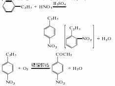1. nitroethylbenzene is obtained by nitrating ethylbenzene with mixed acid at 30-35°c. after distillation, p-nitroethylbenzene and co-product o-nitroethylbenzene are obtained. in the presence of catalyst cobalt stearate, p-nitroethylbenzene is oxidized with air at 140-150°c and 0.2mpa pressure to obtain p-nitroacetophenone. the reaction product is washed with water, neutralized, dehydrated by centrifugation, and dried to obtain the finished product. raw material consumption quota: ethylbenzene 2519kg/t, nitric acid 1535kg/t, sulfuric acid 697kg/t, hydrochloric acid 12kg/t, soda ash 81kg/t, caustic soda 111kg/t, ethanol 100kg/t, methanol 70kg/t.