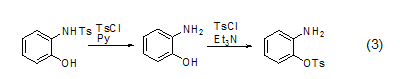 except o-, tscl can also act on amine compounds to cause sulfonylation reaction on n-. and in the presence of different bases, tscl can selectively realize the sulfonylation reaction on o– and n– (formula 3) [3]. in pyridine solvent, the sulfonylation reaction on n– can occur preferentially; in triethylamine solvent, the sulfonylation reaction on o– can occur preferentially.