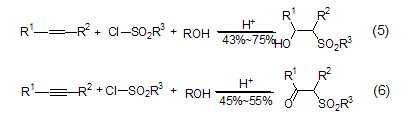 alkenes or alkynes and tscl in under the catalysis of tsoh, β-hydroxysulfonate or β-carbonylsulfonate (formula 5[5], formula 6[6]).