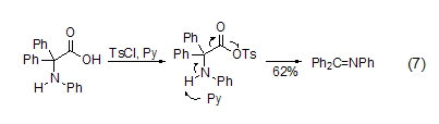 amino acids under the action of tscl and pyridine decarboxylation reaction can occur (formula 7)[7]. the reaction first generates a sulfonylation intermediate. under the strong electron-withdrawing effect of the sulfonyl group, intramolecular electron transfer occurs, and a molecule of hydrogen ion and sulfonate is removed to obtain the imine product.