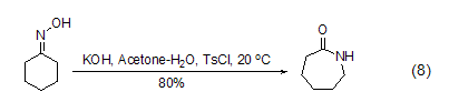 oxime compounds in tscl and pyridine the sulfonylated product generated under the action can continue to undergo beckmann rearrangement reaction to obtain a lactam compound (formula 8)[8].