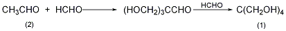 2.pentaerythritol is produced from formaldehyde and acetaldehyde through a condensation reaction in the presence of an alkali catalyst: