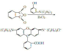 2.mix excess phthalic anhydride and m-hydroxy-n,n-diethylaniline and slowly heat to 100 ℃, then add an appropriate amount of newly roasted anhydrous zinc chloride as a dehydrating agent, and gradually increase the temperature with sufficient stirring to dehydrate while reacting: