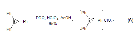 in addition to obtaining neutral aromatic compounds in addition, ddq can also be used to prepare salts of stable aromatic cations, such as oxidation in the presence of perchloric acid to obtain triphenylcyclopropane cations (formula 6)[7].