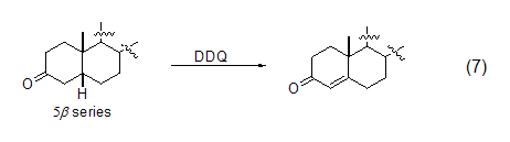 like other quinone compounds, ddq is also an effective oxidizing agent for the preparation of α,β-unsaturated carbonyl compounds. this reaction with carbonyl substrates has been extended to 3-ketosteroid chemistry. the regioselectivity of the dehydrogenation reaction depends on the stereochemistry of the substrate (equation 7)[8].