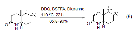however, ddq-induced carbonyl compounds dehydrogenation reactions are still mainly limited to carbonyl substrates that are easily enolized. therefore, the dehydrogenation reactions of esters and amide compounds often require more harsh reaction conditions. for example, adding the silylation reagent bstfa will help the dehydration of lactams. hydrogen reaction (formula 8)[9].