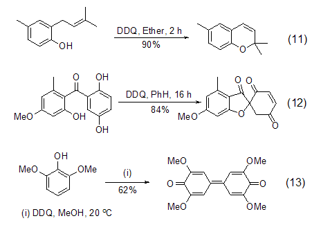 ddq is an oxidation agent for phenolic compounds an ideal reagent that can realize intramolecular ring-forming reactions (formula 11, formula 12) [12] and coupling reactions (formula 13) [13] of phenolic compounds.