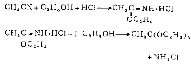 1. prepared by passing a slight excess of dry hydrogen chloride into a mixture of anhydrous acetonitrile, anhydrous ethanol and anhydrous ether.