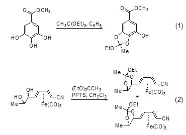 synthesis of acetate under anhydrous conditions, some alcohols will also react with triethyl orthoacetate to form ether (formula 1)[2]. some metal complexes can also undergo this type of reaction (formula 2)[3].