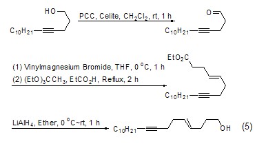carbon can be achieved through claisen rearrangement chain growth. since the rearrangement product is an ester, it can be further reduced to a hydroxyl group, thereby increasing the carbon chain (formula 5)[6].