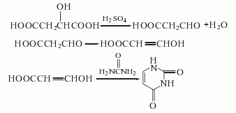 produced by the reaction of malic acid, sulfuric acid and urea.