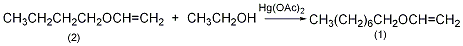 in equipment equipped with stirrers and fractionation devices in the reaction bottle, add 5g (0.016mol) of mercury acetate, 50g (1.08mol) of absolute ethanol, and 100g (1mol) of n-butyl vinyl ether (2). the receiving bottle and condenser are fully cooled. heat to reflux, control the distillation temperature of the fractionating column to be 36-37°c, and distill out a total of 71g of ethyl vinyl ether (1). the yield is 98%. after steaming, water was added to the reaction flask and subjected to azeotropic distillation. the boiling point was 97°c, and finally 71.2g of n-butanol was obtained. [1]